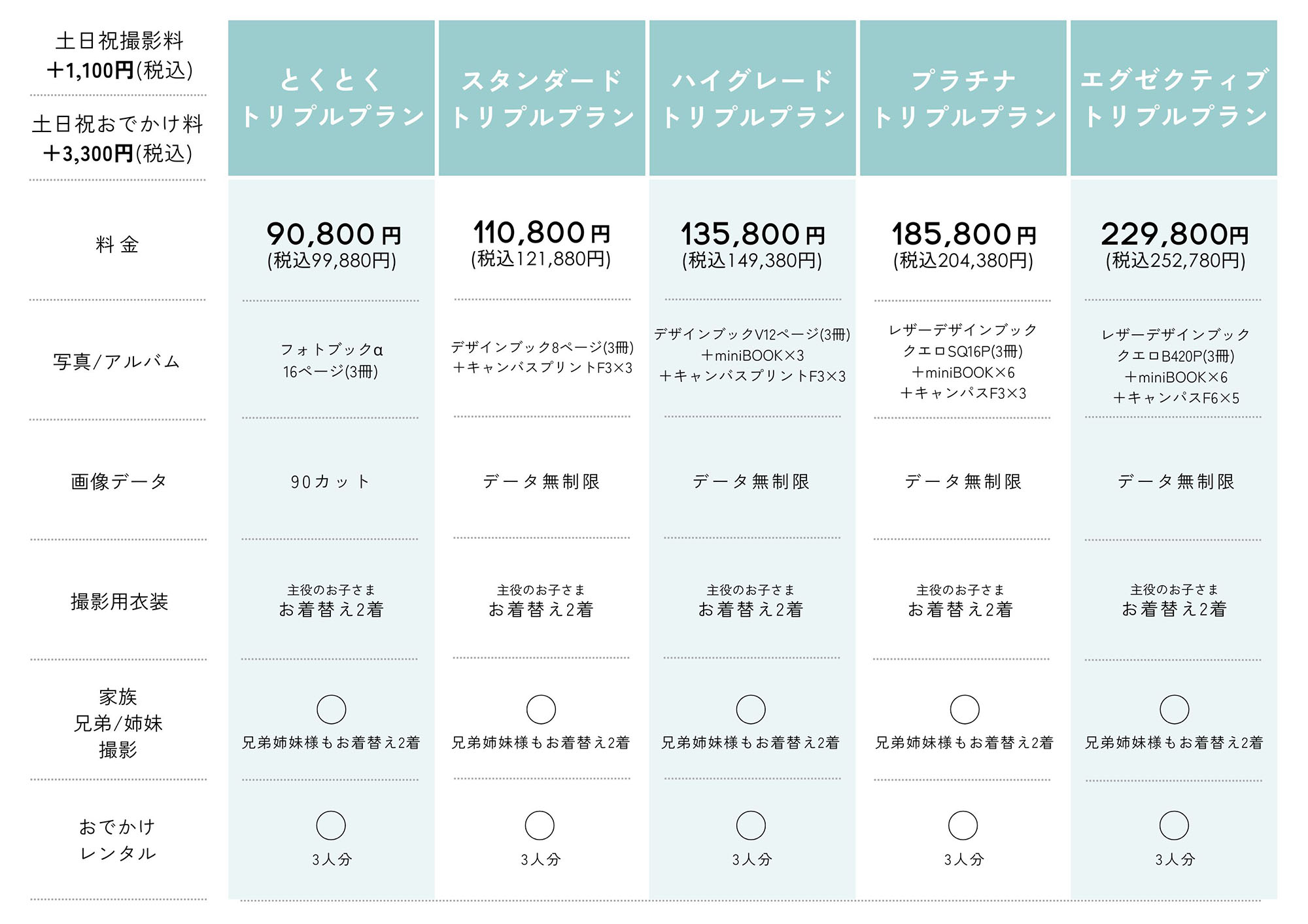 (衣装をグレードアップする場合は追加料金となります。)