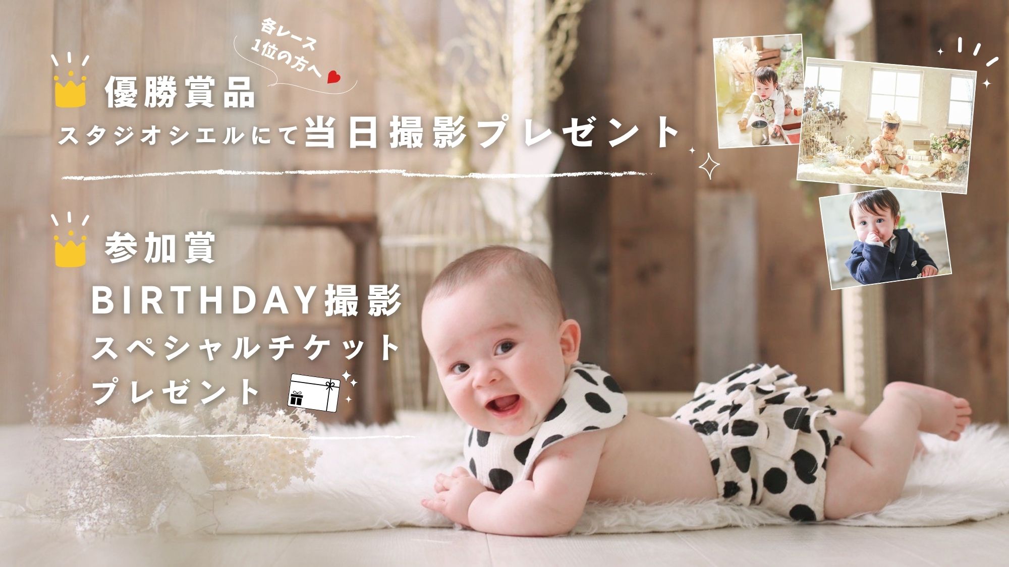 各レース優勝ベビーには当日そのままスタジオで無料撮影をプレゼントいたします♥
